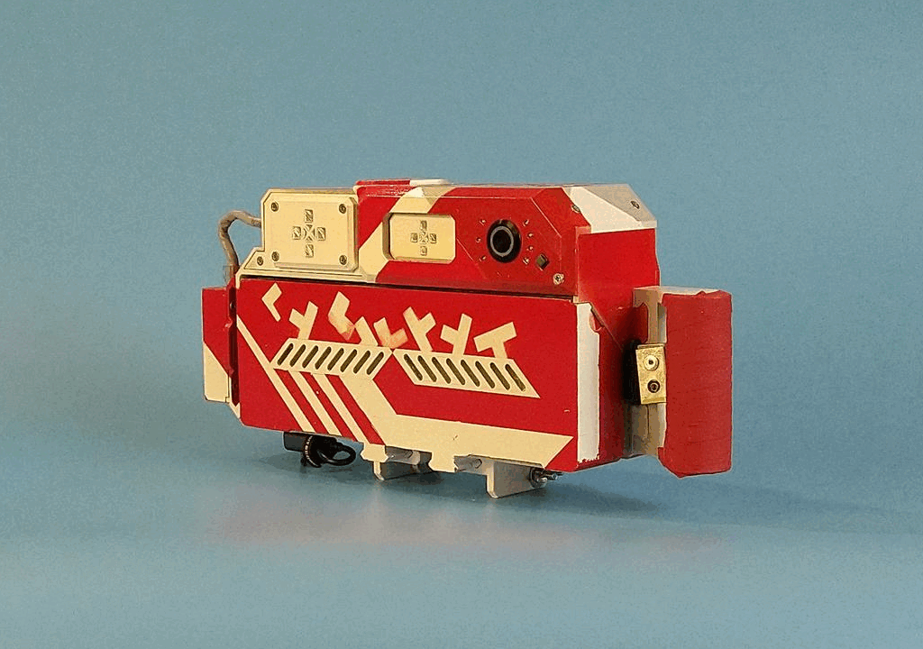 - External (top-left) and internal (top-center) module compartments which are marked by silver "+" (so the unit will be harder to confuse with a first aid kit). Covered by caps in base configuration, those can be used to mount more boards or assemblies that can be fit inside.